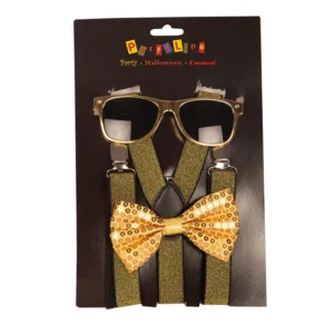 Gouden verkleedset - 3 delige feestset - Bril ,strikje en bretellen