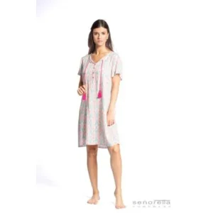 Slaapkleed Q.BO 46718 , lange mouw , ecru met print , 100 % katoen