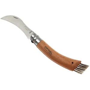 Het Opinel No. 08 champingnonmes is speciaal ontworpen voor het afsnijden van wilde paddenstoelen en champignons. Met het kwastje kan de geoogste paddenstoel ter plekke schoongeborsteld worden.