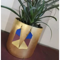 Handgemaakte lederen oorbellen Goud / Blauw / Bordeaux Oud goud / Messing