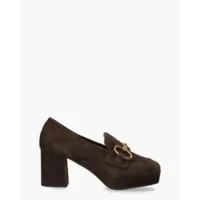 Loafers voor dames 542P30VK uit de collectie van het Spaanse merk Bibi Lou. Deze instapper heeft een suède bovenwerk in een cognackleurige tint. Het gouden bit over de wreef geeft dit model een classic look. Het afgeronde carréneusje is echt van nu. De binnenzijde en het vaste voetbed zijn van leer gemaakt. De stevige blokhak meet 7 cm en het plateau onder de voorvoet is ongeveer 2 cm hoog. Kleur: cognac. (Cuero/Tan)