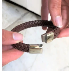 Amore gevlochten armband donkerbruin leer incl. graveren