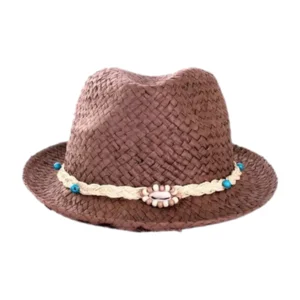 Hoed - Gleufhoed - Stro - Donker - Met hippiebandje
