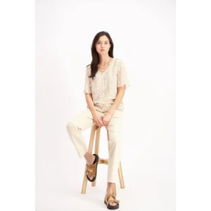 Signe nature Dames bloes: Beige, Vlindermouw ( Signe.1280 ) 42